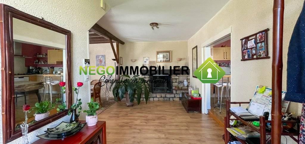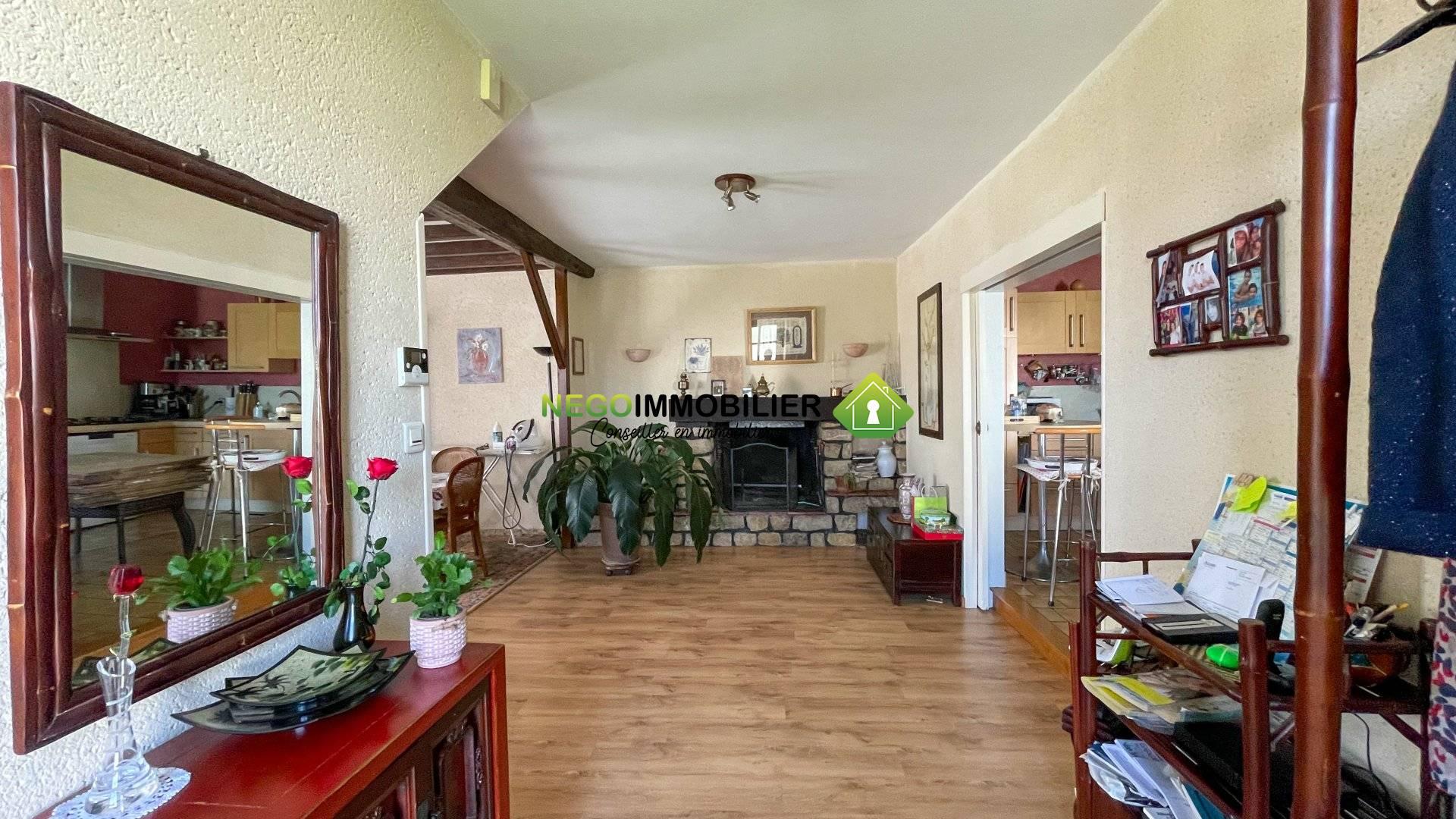 – Un vaste séjour avec cheminée à foyer ouvert, créant une atmosphère chaleureuse et conviviale