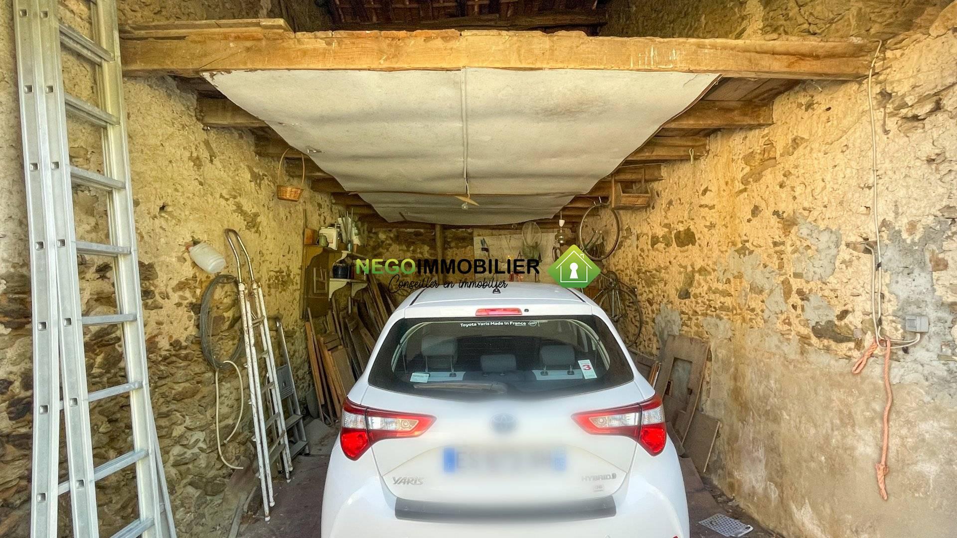 – Un grand garage avec une belle hauteur sous plafond, offrant un espace de rangement en hauteur, idéal pour stationner votre véhicule ou aménager un atelier.