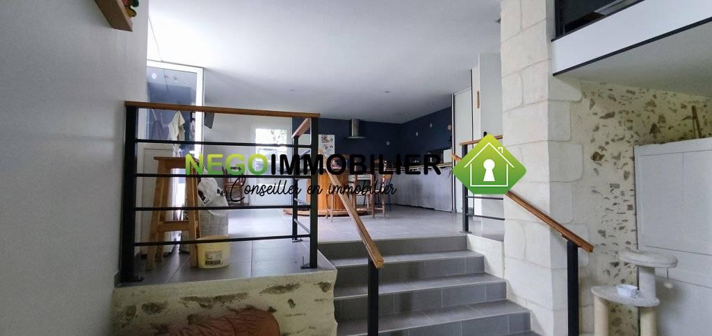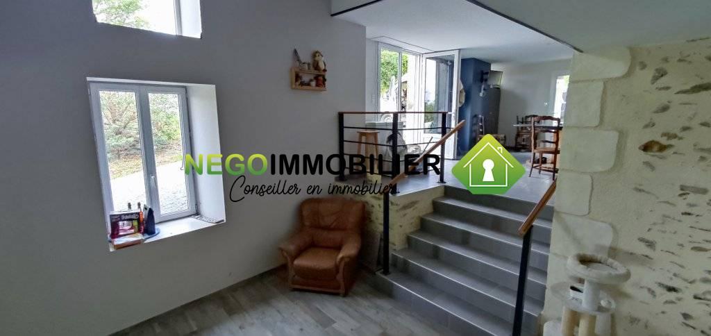 Située en pleine campagne à proximité de LA CHATAIGNERAIE, cette maison entièrement rénovée entre 2017 et 2019, vous offre une surface habitable de 132m², sur un terrain d’environ 6700m² avec un étang. Ce bien est composé ainsi: