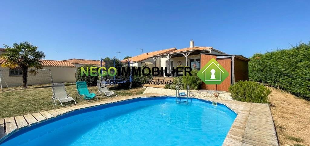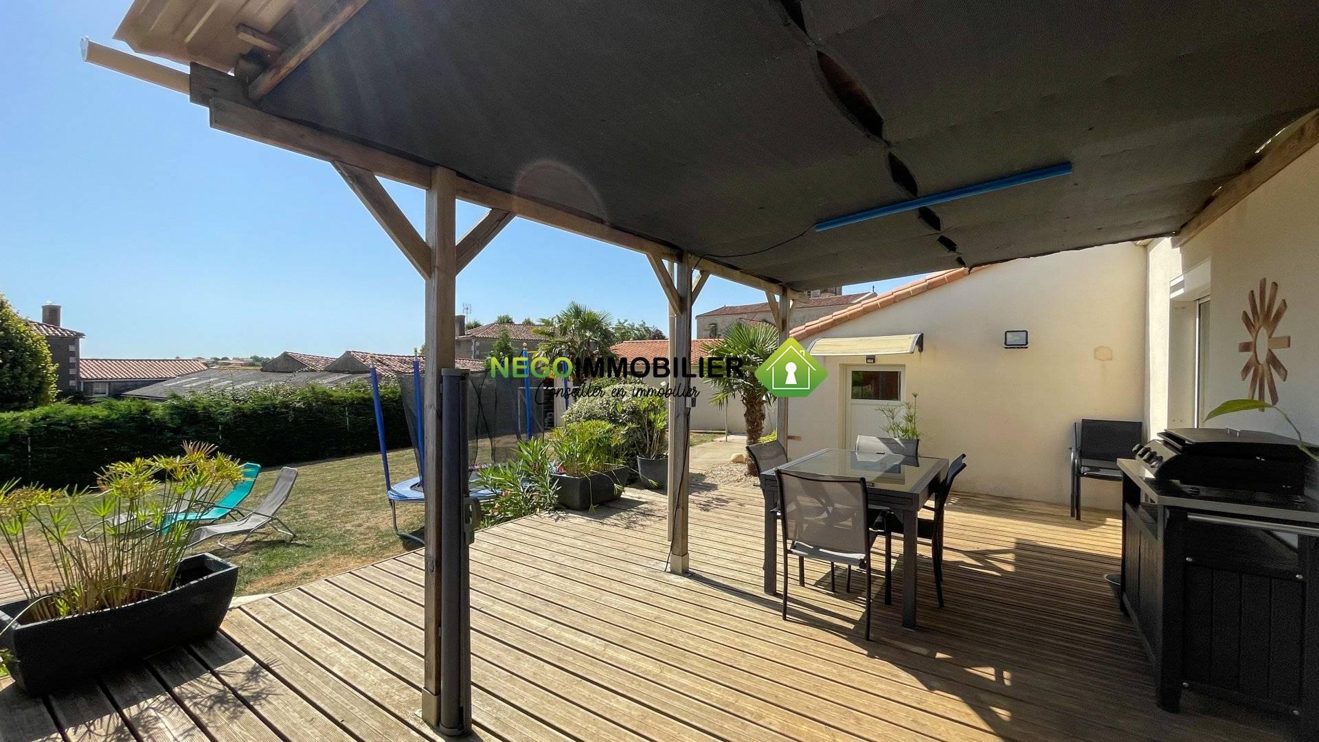 Sur la commune de Sainte-Hermine, charmante maison de plain-pied construite en 2003, d’environ 113 m² habitables, implantée sur un terrain entièrement clos de 1 173 m² avec un extérieur fraîchement aménagé.