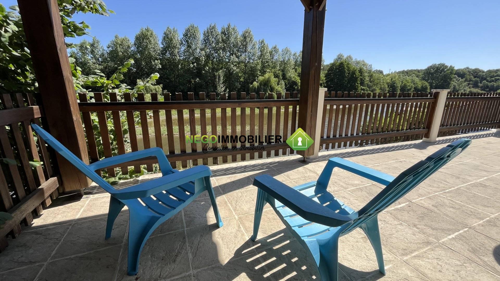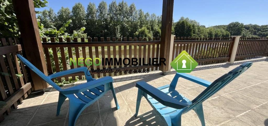 À l’extérieur, le terrain de 4 815 m², bordé par l’eau, offre un cadre de vie rare et privilégié. Un ancien ponton, à réhabiliter, renforce le charme bucolique de cet endroit unique. Non attenant à la maison principale, une dépendance avec plusieurs garages et un grenier de 62 m² (déjà en partie aménagé) constitue un beau potentiel d’extension ou de projet annexe, avec son propre petit jardin.