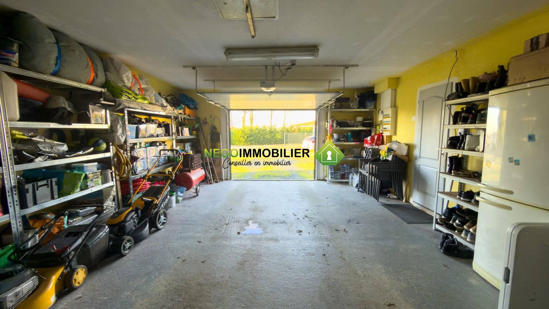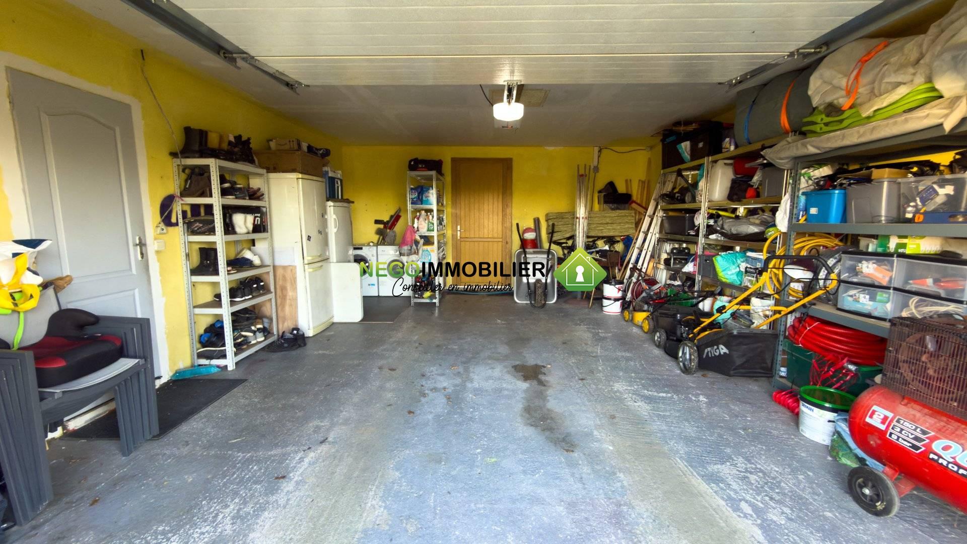 Garage de 37 m² avec portail électrique et buanderie : stationnement sécurisé et espace de rangement supplémentaire.