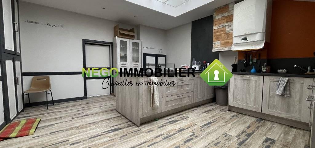 Attenant à la maison, un garage complète l’ensemble, agrémenté d’une cuisine et d’un débarras, apportant un confort supplémentaire ou une opportunité d’aménagement annexe. À l’extérieur, vous profiterez d’une agréable terrasse d’environ 30 m², parfaite pour les moments de détente. L’ensemble est édifié sur une parcelle de 215 m².